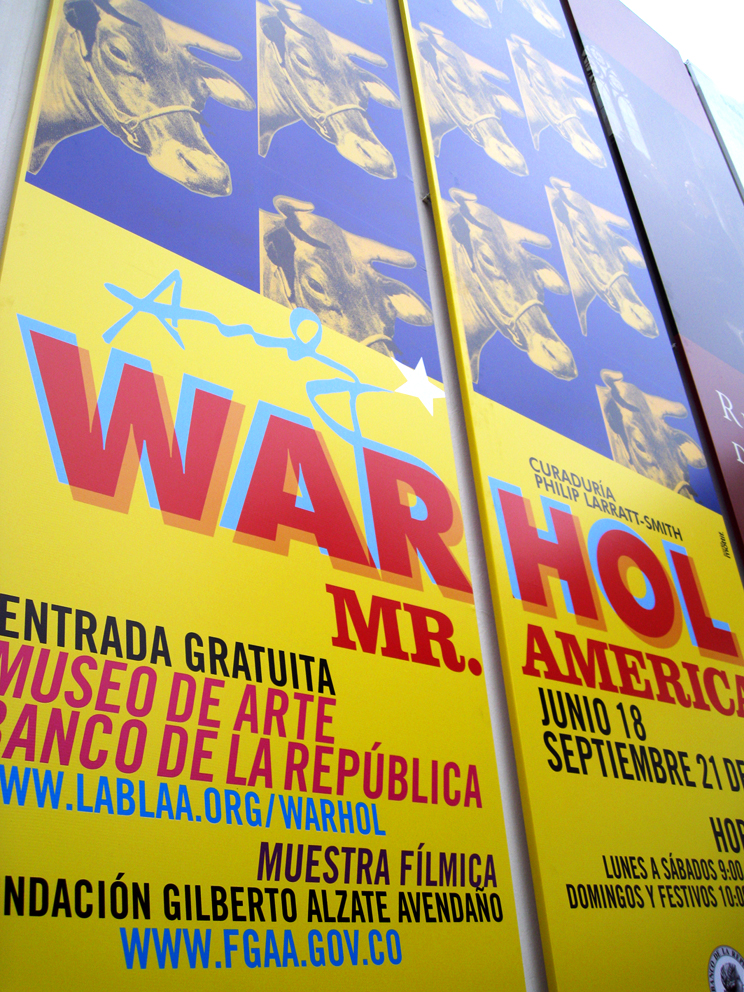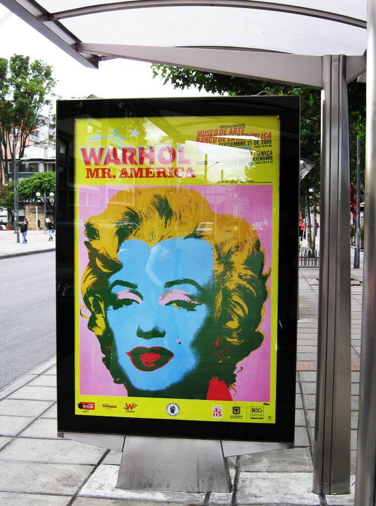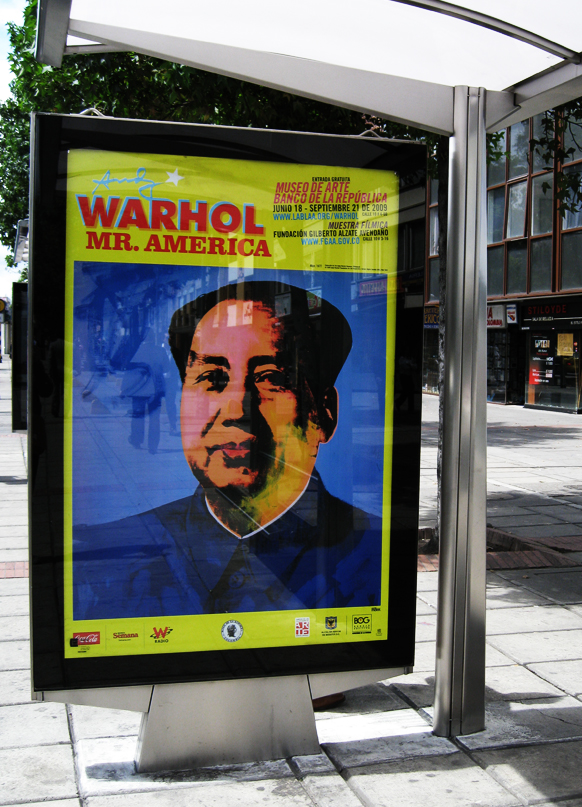 En las bodegas del Banco de la República, antes del montaje definitivo en salas, estuvimos frente a las obras originales (yuhuuu!) revisando el color una a una para asegurarnos de que saliera perfecto en el catálogo. Mientras tanto, afuera, las calles de Bogotá fueron invadidas por Marilyn y Mao en paraderos, estaciones de Transmilenio, postes de luz y en cuanta revista y periódico se publicó en Colombia en 2009.