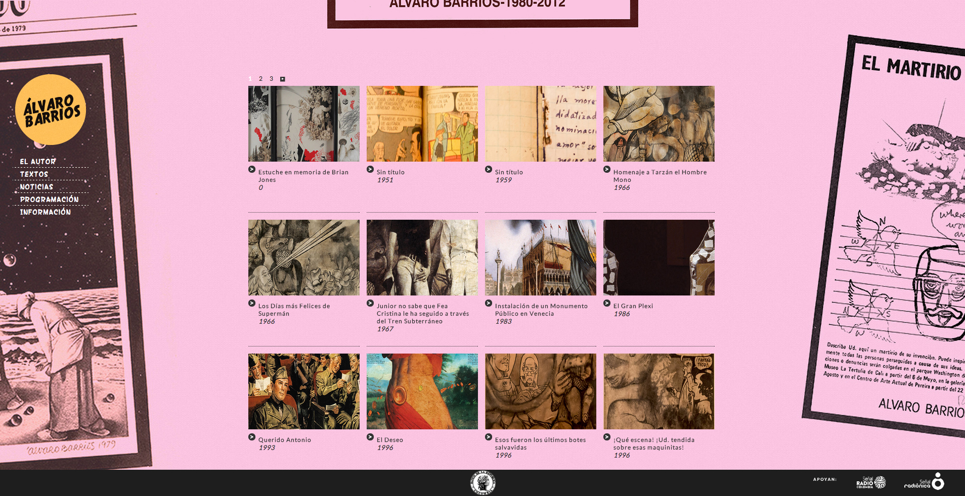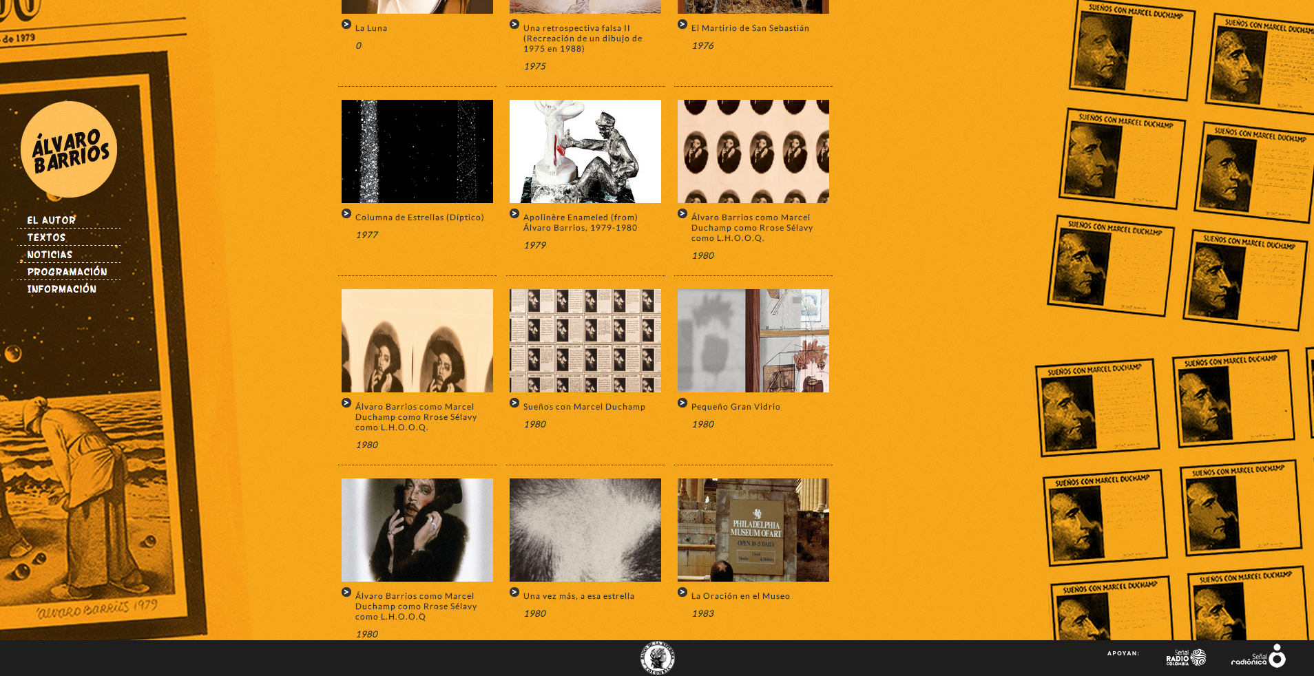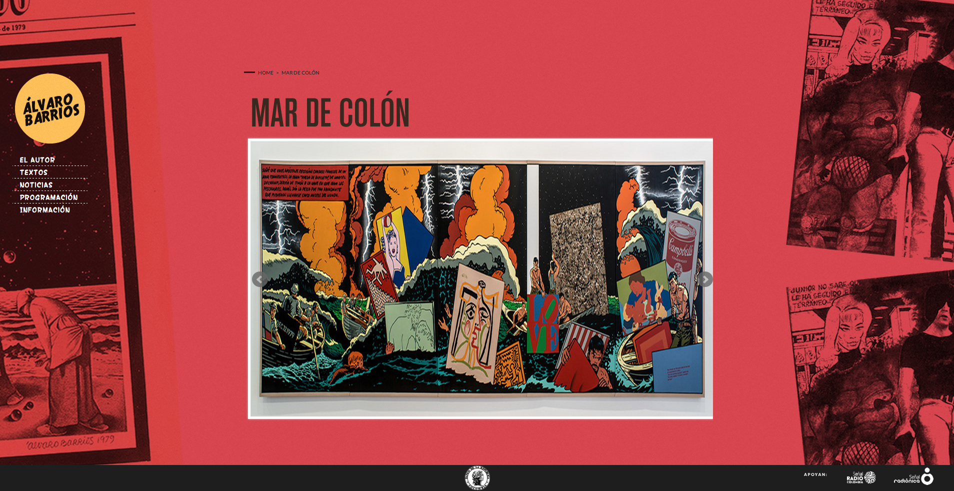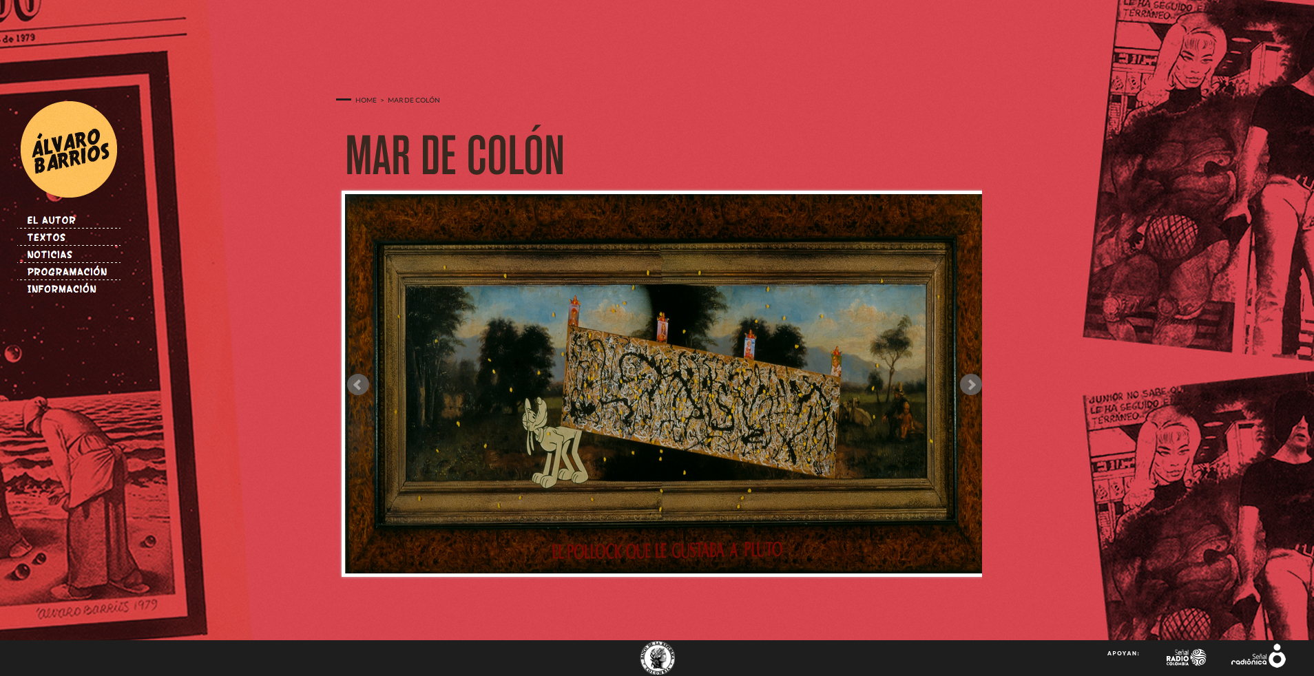 Seguro ha visto alguno de sus cuadros sin saberlo y ha quedado, cuando menos, impactado. Lienzos enormes, llenos de color, con viñetas de cómic con ¿¿¿!!!Dick Tracy salvando un orinal de una nave espacial en llamas¡¡¡??? Bueno, ese orinal es nada menos que "La fuente" de Marcel Duchamp, obra y artista con el que Barrios tiene una fuerte conexión. Pocas cosas dan tanto placer como sentarse a diseñar (en este caso la web de la exposición) con un telón de fondo como la obra de Barrios.