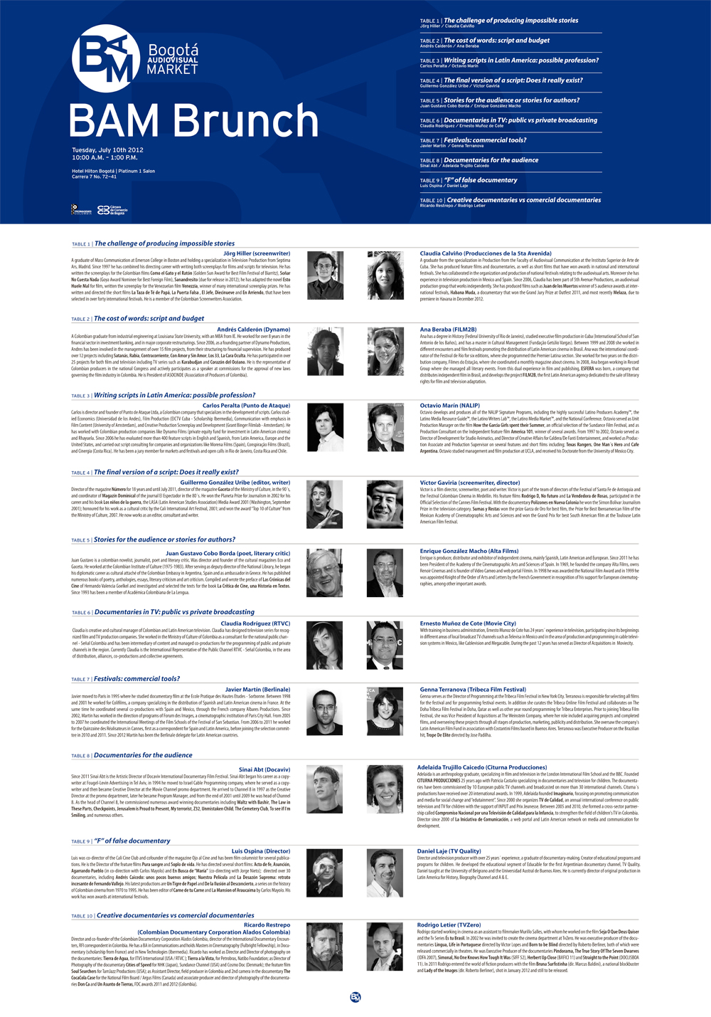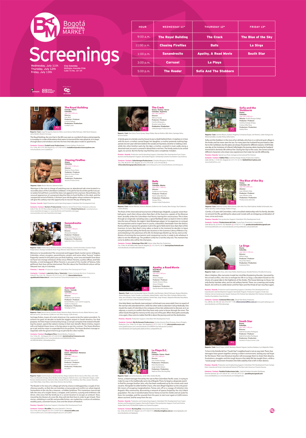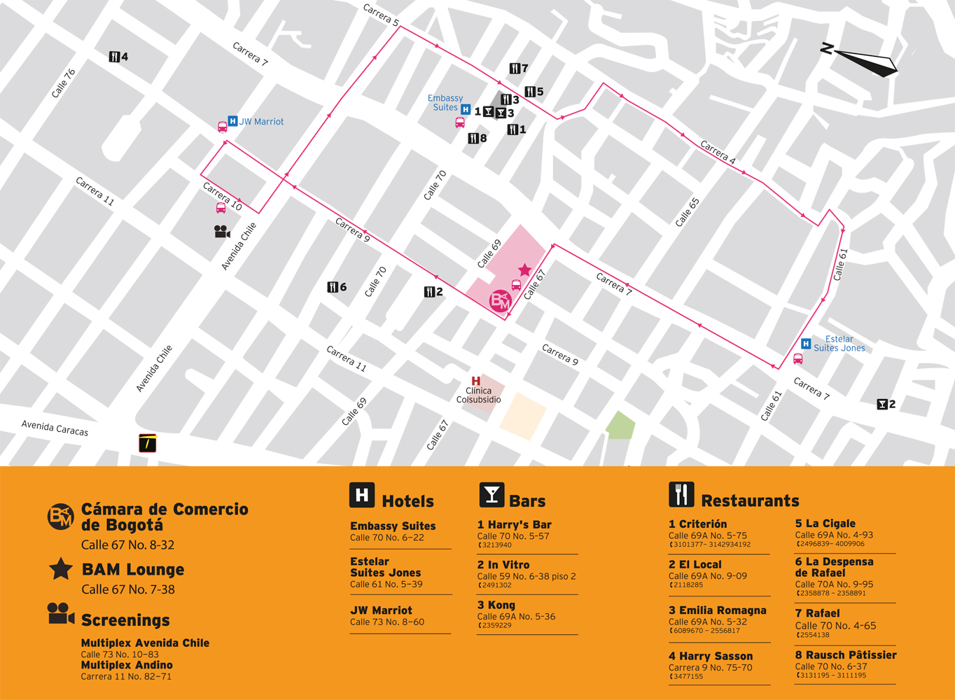 A Proimágenes Colombia y a la Cámara de Comercio de Bogotá se les prendió el bombillo y apareció BAM, un mercado audiovisual lleno de ideas y negocios. Mottif creó su identidad y le dio color: una gama ácida que se mueve entre el magenta, el verde y el naranja. Un evento que cada año crece y se multiplica con una imagen que ya todos reconocen.
