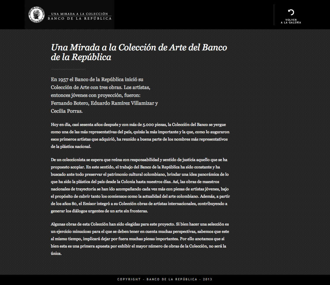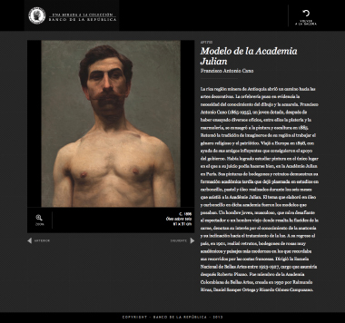 El Banco de la República tiene una colección alucinante de más de 4000 obras de arte. Buena parte la conocemos ya: ha estado por años en las diferentes salas de exhibición del Banco. A propósito de una renovación en el montaje, Mottif diseñó la página web Una mirada a la colección para explorar de cerca y, literalmente, con lupa, algunas de esas obras "imperdibles".