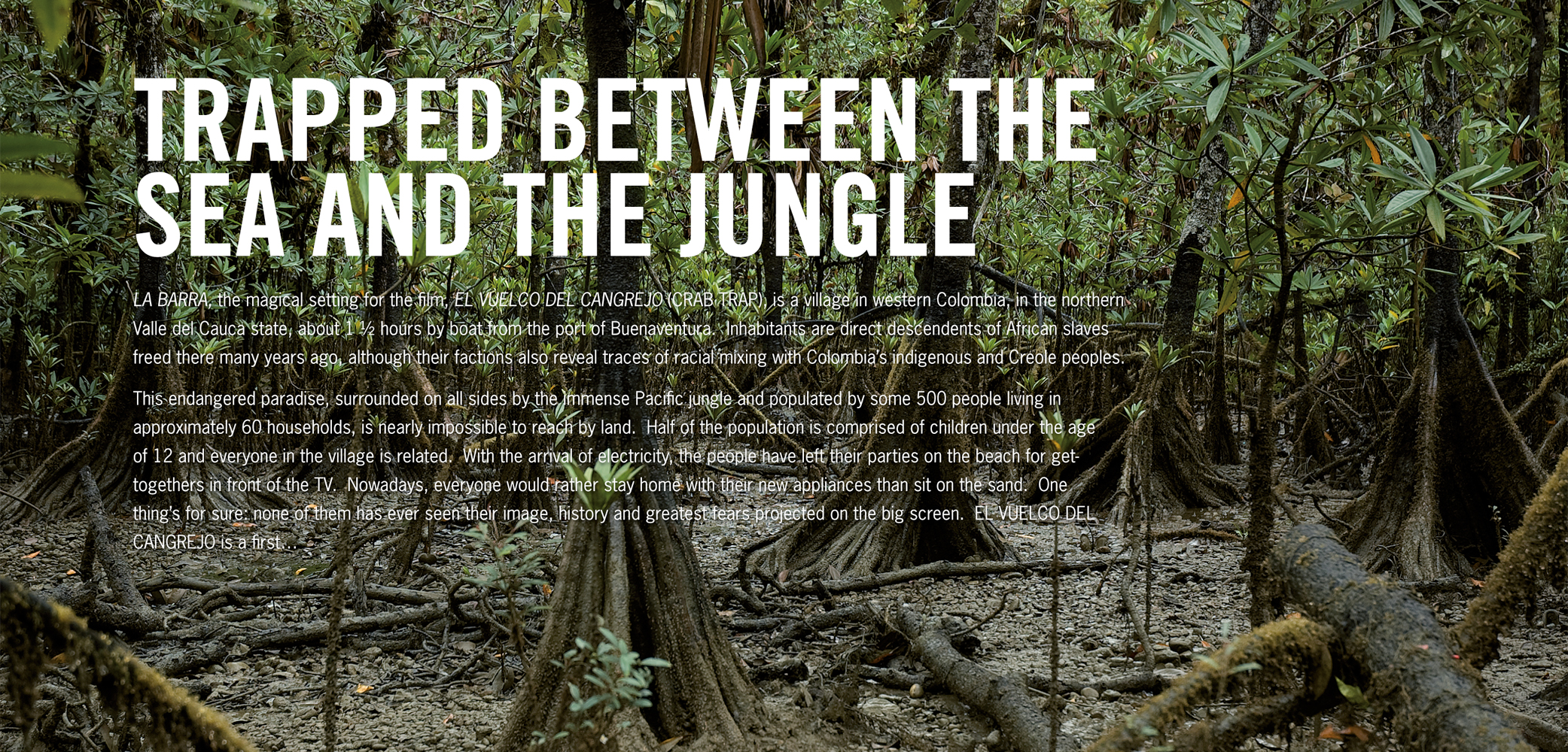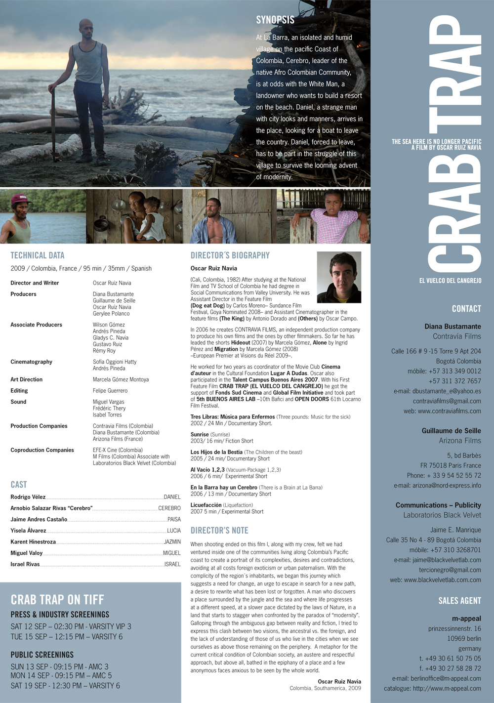En una habitación en Teusaquillo nos sentamos junto a Oscar Ruiz Navia, su director, a ver El vuelco del cangrejo. La película estaba sin terminar; faltaba el sonido, el color y el corte definitivos. Momento memorable que enmarca el inicio de Mottif en el mundo del cine. Con El vuelco nos sentamos por primera vez a pensar en cómo darle forma gráfica a una película.